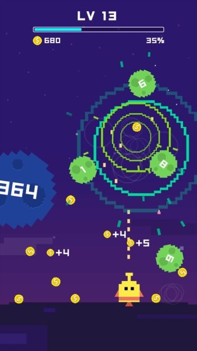 2.您还可以使用道具使球狂奔并按照关卡。