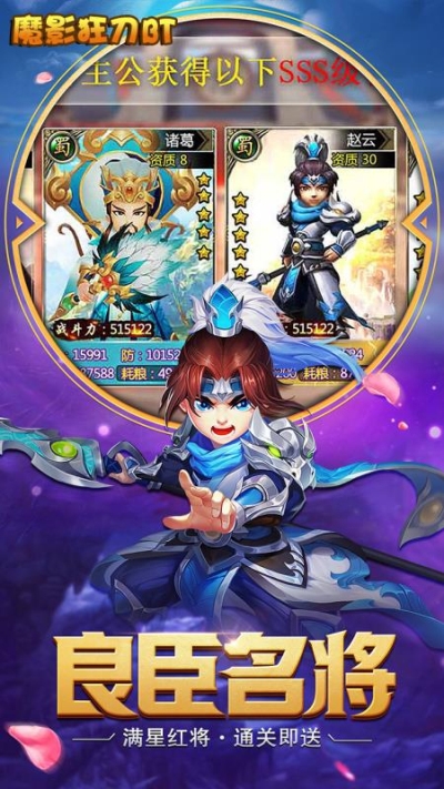 《魔影狂刀bt版》这款三国历史背景的放置挂机类手游,游戏以三国时代为背景,玩家们在游戏里还可以招募各种三国名将,自由组合组合,组建你的最强军团,称霸三国,玩家们登陆游戏就还可以领取专属礼包,让你赢在起跑线上,还有满级vip特权,各种福利直接感受。感兴趣的小伙伴尽快来免费下载吧。