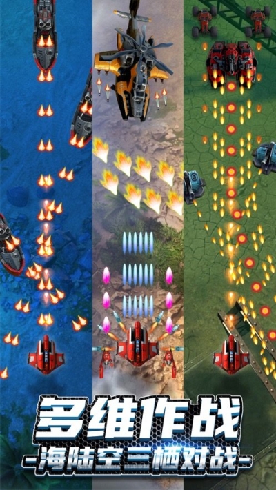 1、任意三选一的升级作用,让战机的攻击方式在作战中随意配搭,全部的进攻都笔走龙蛇,还可以在凶险的時刻保护你,给你战斗更轻快速松。