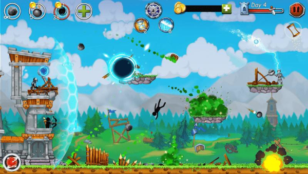 - 直观控制,点击屏幕拉充电弹弓和选择的力度,释放发射弹到敌人。