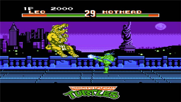 《忍者神龟格斗》是神龟在FC上的最后一作,竟然还是格斗类型的游戏,素质颇高,动作硬派,在FC上估计没有哪款格斗游戏能够出其右。