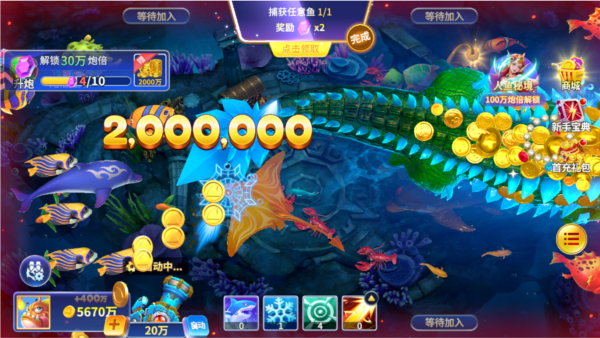 2、金币不多时,建议多捕获小鱼,慢慢积累金币,等到积累一定程度之后,一般鱼群也刚刚好出现,这个时候一定要把握好时机,将鱼群收入囊中,使自己的财富更进一步,然后把目标对准BOSS,一步一步往高处走。