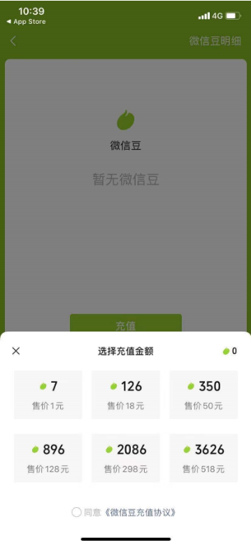2、微信豆多少钱目前充值金额共有6种选择分别是:
