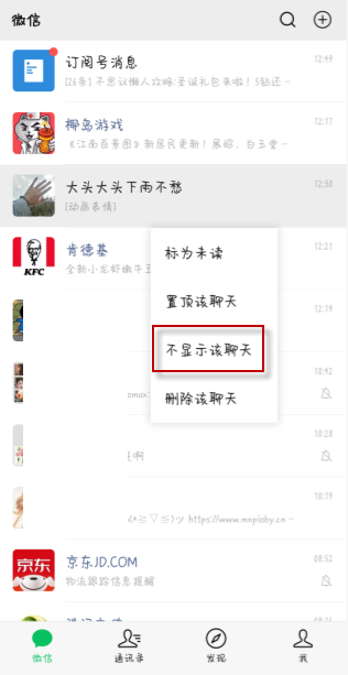 微信不显示该聊天怎么设置