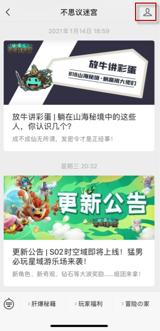 3、进入公众号界面,点击右上角人物图标;