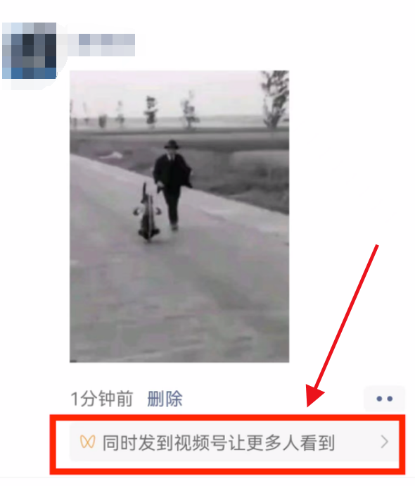 2、在朋友圈发布一个视频后,我们可以查看到下方小字同时发布到视频号让更多人看到。点击这行小字。