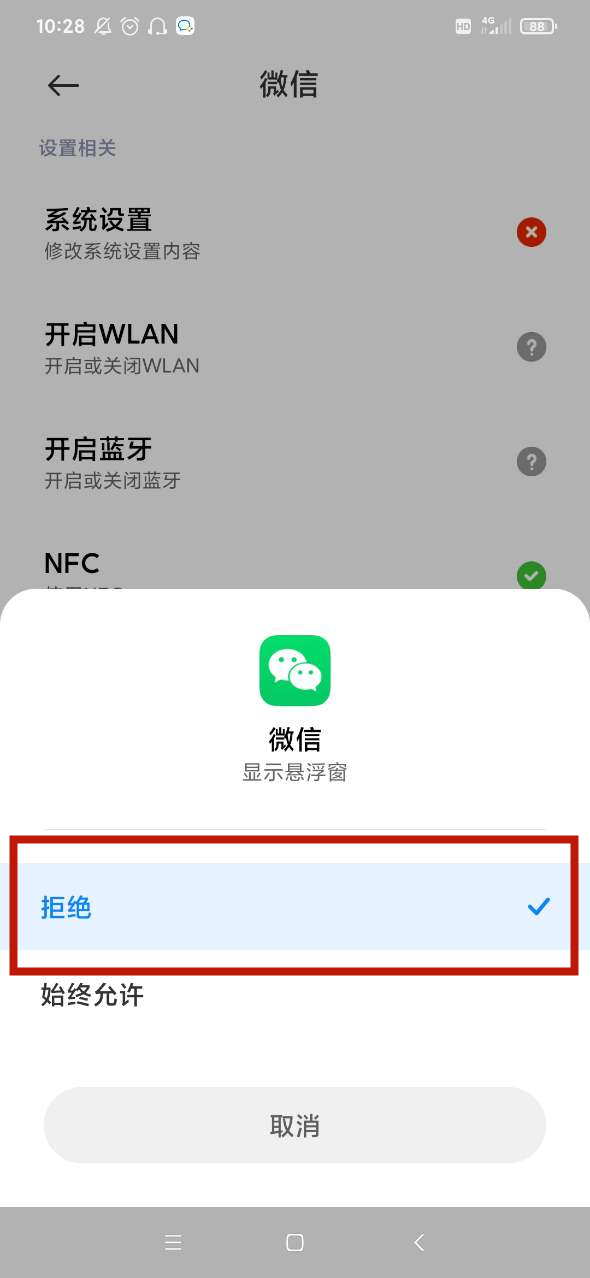 微信功耗浮窗是在手机设置中的权限管理关闭,进入权限管理之后,找到微信选项并点击,进入页面后选择悬浮窗点击关闭就好了。