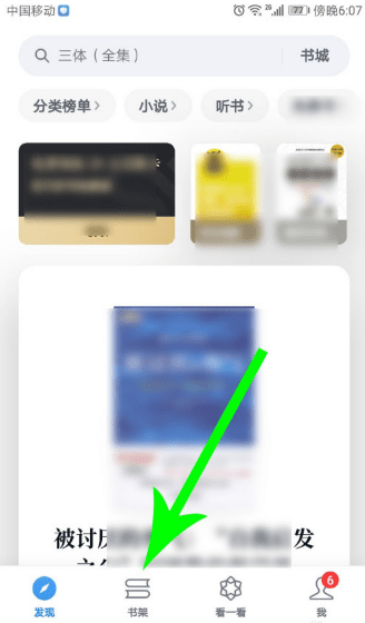 1、打开微信读书首页,然后点击“书架”。