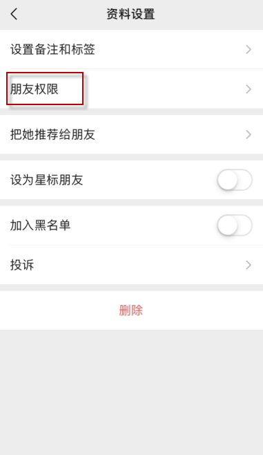 3、可以看到朋友权限,点击;