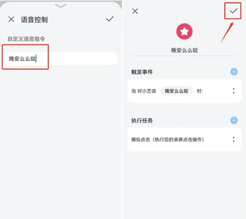5.设置触发条件,记住自己设置的自定义语音指令,点击保存。