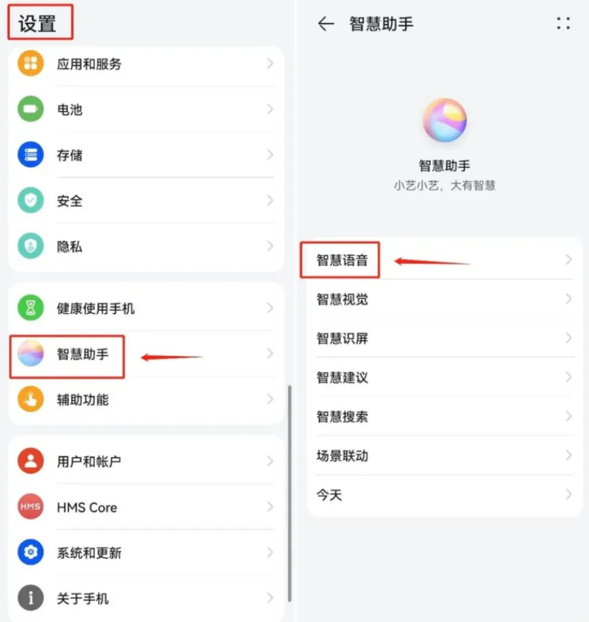 1.打开设置,点击自己手机中的语音助手中的智慧语音